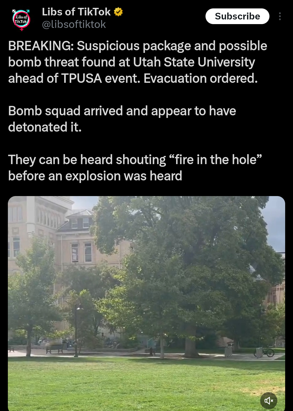 BREAKING: Suspicious package and possible bomb threat found at Utah State University ahead of TPUSA event. Evacuation ordered.